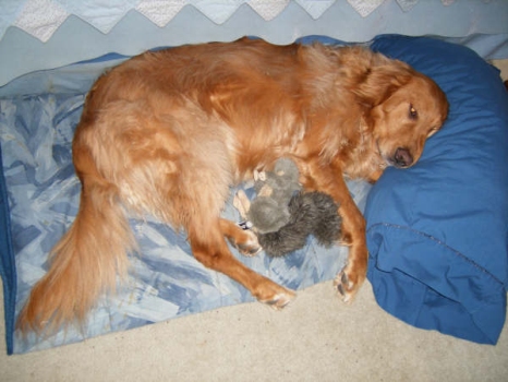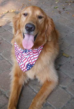 When Rusty came to meet us, we knew the moment we saw him he was the dog for us. After waiting for a year after we lost our first Golden, Sunny, we were ready for a new friend. And there he was, our beautiful Rusty. If it hadn't been for RAGOM, we never would have found this boy. And what joy he has brought to our life. He's completed our family. He's our only pet except for our goldfish, so he's very spoiled, but I think he deserves it. We were also very fortunate that Rusty, 3 years old, came to us extremely well trained...a much better job than I could have done! Of course that doesn't mean that he's boring, he will do most anything for tennis balls. He's now up to toting around 4 at a time!