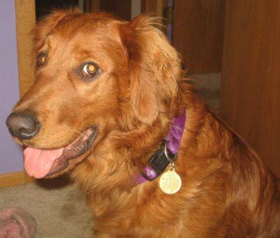 As I said earlier, he is not a small Golden. He is dark red with a gorgeous face! I?d guess him to be around 70 lbs., give or take 5 lbs. He appears to be very healthy, is up to date on shots and microchipped. And, did I say how good-looking he is?? I believe he would really excel at further training. He is very food motivated, so training should be a snap. Down the road, (when he?s out of his puppy stage and further trained) he perhaps could even do agility or become a therapy dog.