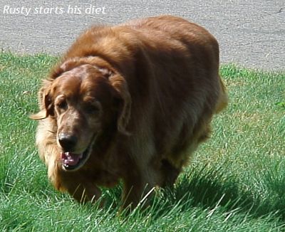 Rusty is in pretty good health: he's overweight and suffers from buttacus giganticus. Yes, being big can have its disadvantages when getting up steps and into or out of cars. As long as he limits his intake of cake and ice cream, his mild diabetes doesn't seem to be a factor in his life.