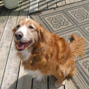 Again, Rusty is in super good shape and is just beautiful. He has a white chest and a great golden/reddish coat with nice feathering. He did wonderful at the groomer (he does not like to be crated). He was a perfect gentleman at the vet and every one loves him. He is a total lover boy who really is a true companion dog. Rusty is a great family dog. Prior to coming to us in Ragom he was an only dog however, he really enjoys having other dogs around. He is totally fine with our cats. He is really enjoying our yard (fenced) with the crew and playing fetch. What a lovely boy indeed.