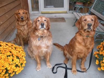We have had a truly fun first week with Sadie, and all I can say is that she LOVES life! She is a young, joyful 7 yr old, and is a terrific mixture of energy and playfulness, and sweet, gentle Velcro dog. We’ve discovered that she LOVES car rides (she was thrilled when she scored treats at Starbucks, Walgreens, and the bank, all on one day), loves going for our 2 walks per day with the 2 resident goldens (she walks great on a flat leash), eats with gusto, and is always first in line for whatever treat might be coming her way!