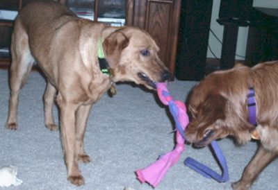 5/26/07: We picked up Sadie Mae yesterday from Iowa (thanks Bob B for taking the difficult half of the transport) and I must say that Sadie is by far the best road-trip dog I have seen.  She just went in the back and played a little bit with my resident dog and then laid down.Last night we went to the dog park to burn off some steam and get some exercise after being in the car for over 6 hours and she did great.  She met many different dogs and people and was wonderful with all of them.  I have two little girls (4 & 7) and they already love her and she is so good with both of them.  My resident Golden and Sadie have not stopped playing ever since they met.  They have been sharing bones, rawhides, ropes, etc. without an incident!Sadie has followed every command that I have given - sit, stay, come, go lay down - she seems very, very smart.  One thing that needs to be worked on is her heeling, or lack of it :)  She would be a good sled dog because she does like to pull. Within just a few hours she is already doing much better.  I think she just needs to have some practice and maybe obedience classes.  I was told that she likes to jump up on people but so far she has had good manners in that area, too.  She did have an accident yesterday but I think it was because of all the changes and getting used to a new home. The owner did say she is housebroken.  Like my resident dog, Sadie may also be an excitement/submissive urinater.  I haven't seen it but the gentleman who helped transport her has.  She isn't crate trained so I thought I would give her some lessons because it's nice to have that option :)  She slept all night by the side of my bed with no problem.  I'm not sure what time she got up because my wonderful husband gets up with the dogs on the weekend so I can sleep in.So in summary, "perfect" dog who needs help with heeling.  I will try the Gentle Leader today and see how that works.She has an appointment at the vet on Tuesday so I will send out an update with the results.