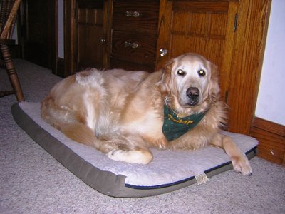 Sahara has adjusted to our house like she has lived here forever. She gets along with everyone, including my sometimes grouchy older dog (he has not even growled at her) and she has played with my young guy. He has been exposed to so many types of dogs since he came here that he is totally appropriate with whatever he is dealing with. He plays much easier with Sahara than he did with his recent house guest Boo Boo, who was also a rambunctious pup, but he got her to play and they have done it several times. Granted the duration is much shorter and the tone is much calmer, but they do play...she seems to enjoy it and even when they aren't playing, she pals around with him in the yard. She is a very easy dog to have around, she just wants some love. She is pretty velcro and likes to be near possibly touching. We have a walked a couple of miles and, wearing a gentle leader, she walks beautifully. She has been to Petco and was very interested in what she saw and smelled and seemed to enjoy herself. She is a beautiful full-figured blond and will make a great companion for someone.
