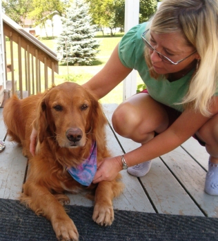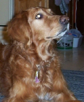 Sam is an 8 year old male Golden Retriever. Sam is a formerly adopted RAGOM dog. He suffers from periodic Separation Anxiety. This is the reason he has been returned to RAGOM after 4 years with a loving family. SA is not a constant problem for Sam, and he has shown no symptoms when he is with other dogs. Sam respects baby gates - he doesn't like them but he does respect them. His current foster home is working extensively with him to help him recover from his terror of crates. Even with this, I would hesitate to ask him to remain in a crate for long periods of time. I would NOT hesitate to baby-gate him into a safe room that does not contain papers to shred. The shredding of papers is the main way in which he has manifested his Separation Anxiety in the past.