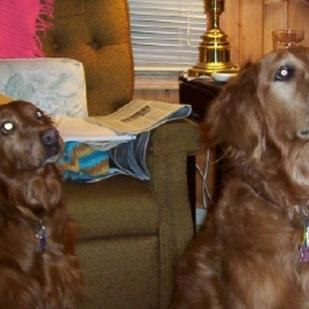 Sammy does not get too excited about anything except playing ball. He is quite subdued. I took him to my Mother's farm where we have lots of woods and a small river (more like a creek) with some man-made ponds my stepdad made. He is awesome in the water. We had 4 dogs out there that day and he was the fastest, most athletic dog out there. Everybody was amazed at his quickness and ability to stay in the water to find the stick we had thrown for him. As an 8 year old dog his stamina is incredible. He is more like a 3 year old. He loves to be outside and really won't come in without some coaxing. Sam is a wonderful loving dog and is very loyal. We have only seen a couple episodes of his SA and they were very mild and nothing severe. He does whimper when you leave but with the other 2 dogs around he just settles right down. Sam has a lot of years ahead of him and would make a great companion for anyone who can spend a lot of time with him.