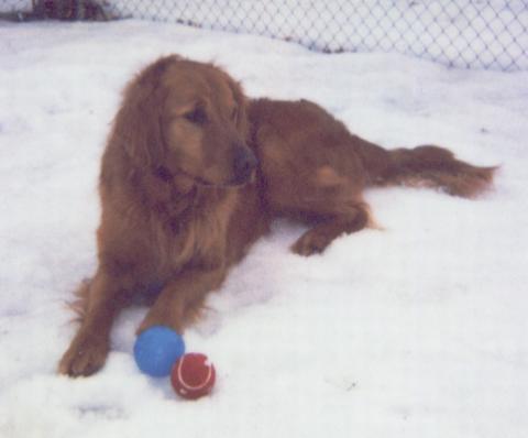 He loves chasing balls. He lives for that. He gets so excited when he knows that he is going out to play chase the balls. If he had his way, we would be throwing them in the house. Unbelievably, he manages to fit 3 of them in his mouth at the same time. The third one sticks out the side of his mouth held there only by his lip I think. He is very possessive with them but never aggressively so. He wants to chase them, but he doesn't want to give them up so that we can throw them. They need to be pried out of his mouth or he needs to be distracted so we can get them. He is very good natured about it.