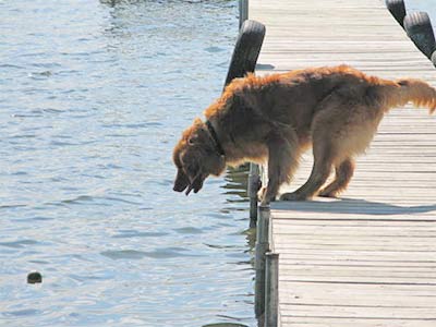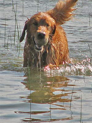 Sam is a great dog. He‘s settled nicely into our daily routine. He’s excited to see us when we get home and is eager to play or go for a walk. He has the run of the house while we are at work and never has accidents or destroys anything while we are gone. This guy walks nicely on a leash, and is very friendly and mellow. A couple new things we discovered about Sam is that he isn’t bothered by thunderstorms and also that if your truck or car door is open, he’s in there saying “let’s go!” Sam was a little tentative about going swimming in a lake at first but quickly figured out it was fun. He was having a great time splashing around and fetching the ball in the water.