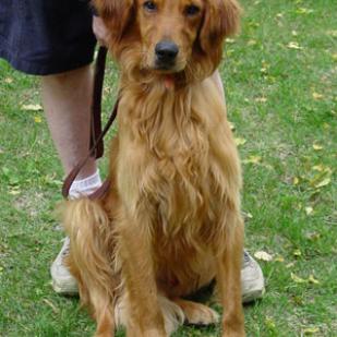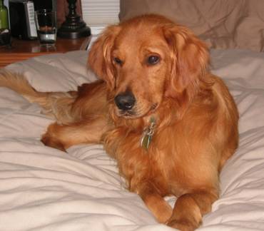Hi! I am Sam's new foster, Stephanie. I have had him for about a week but will sadly be handing him back over to his previous foster, Denise. He is a little too rambunctious for my senior golden, Buddy, who is 12 years old. I am just afraid Sam will accidentally step on Buddy's hips or back legs and cause him more pain. Sam is a very sweet, loving dog. I will miss him very much. He just is so excited to be out of his outdoor kennel and around people. He is just expressing some puppy joy! I can't blame him. Sam sleeps through the night by our bedside, and has not had any accidents. We actually have to drag him out of bed around 10 or 11 to go potty. Yes, he can hold it. He loves to cuddle, and follows me around the house everywhere. I think he has a tendency more towards women than men. Not that he doesn't like men, he just seems to be more attached to me than my husband. Sam will make a perfect family pet, I just would not recommend small children or older senior dogs. He has a lot of energy to work off at times so he does need walks/jogs daily and fetch games. He and our 3 yr old dog like to play lots together. He would also benefit from some obedience training. He knows sit, and sometimes lie down, but that's about all. He also would do better if he wasn't left home alone all day. He needs to be with someone who possibly works from home or not gone for long hours during the work day. I think he is just a little scared that he will be left alone forever again...poor thing. I will miss him!