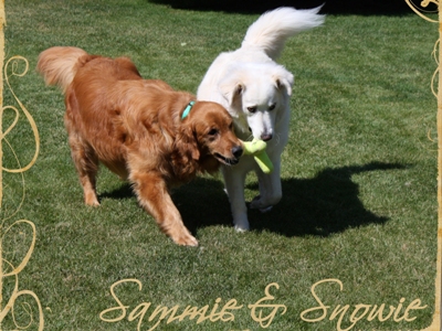 This past week, Karen called and said she needed to talk to me. Yep, it happened: Snowie and Karen were in love with Goose/Sammie!!! She wanted our blessing to adopt Goose/Sammie. Of course, we were happy that it happened and I am even happier for Snow and Sammie (the goldens) as well as for Sadie and Snickers (the cats)!