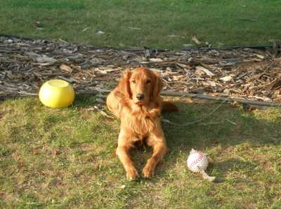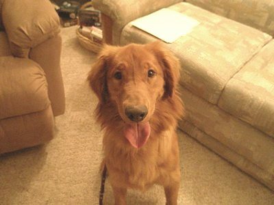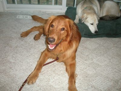 Sampson is about 2 years old, very red, and weighs 64 pounds.  Sampson has already been vetted, and is neutered.  He just arrived tonight and one thing we figured out right away - Sampson LOVES tennis balls!  If you are looking for a dog to play fetch with you outside, Sampson might be the guy for you!  However, Sampson is not super obsessed with them - when we had him leave his dirty tennis ball outside, he was just fine with hanging out with us.  No frantic search for toys, no straying to far away from us.