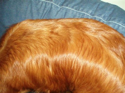 Sam had an initial check-up at the vet and his stool sample was good. He takes antibiotics for a bacterial infection that left him with a couple sparse hair spots on his back. We're working on giving him the two shampoos a week that the vet prescribed. Samuel is a nice 79 pounds; the vet said that his ideal weight would be 75 and he'll probably slim down with a consistent exercise routine. He has a follow-up appointment next week.