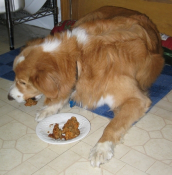 Just a little update on Sandy. She celebrated her 7th birthday in February and I made her a cake with ingredients for dogs. The one picture attached is that. I made the cake into 4 cupcakes and she got one right away. However, we have discovered that she will steal food off the counter if it's not covered well, and early the next morning I heard a plate rattle, and she stole the rest of her birthday cake!