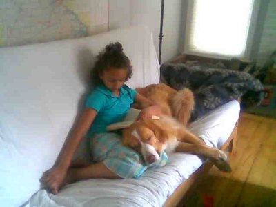romp with Bubba. Right now I am dictating this to my foster mom in her office, while Bubba and I are sprawled at her feet.