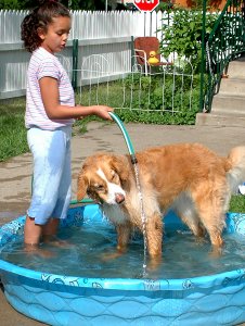 Oh, I do want to go somewhere that has a fun dog for me to play with. It could be big or little but I can't imagine not chasing a dog trying to bite it's tail (for fun) every day, usually 5 times a day. And a fenced yard keeps me happy for hours sniffing every inch of the ground. And......please can I have a pool? I will look at you adoringly with my big brown eyes for hours if I can have a $7 plastic pool.