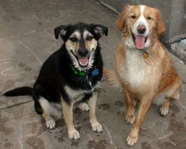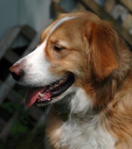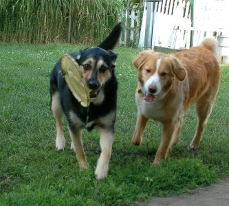 I am super strong and I like to go for walks, but I just hate that gentle leader, so I'm still working on that. I know sit, stay, and down. After just a few tries, I now know to let foster mom in the house first, then Bubba, then me. I am not the least bit selfish with my food or space, I like to finish off Bubba's breakfast while she finishes mine. I have free reign of the house and the towel episode has been the only thing I've chewed up, and there are a lot of shoes to pick from around here. I do like to bring people their socks and slippers sometimes, but I think that's just being helpful.
