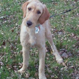 Sandy is a sweet 8 month old Golden Doodle. She is shy around people, but great with dogs and seems fine with cats. She loves to play and follow my dogs around. She is going into the vet for her spay tomorrow, Tuesday 12/7/04. She is being treated for ear infections in both ears. She is becoming more like the puppy she should be every day. She likes chew bones and toys. Because she has had a rough start in life, her ideal home would be with another doggie pal. A respectful child would be OK. She has a very sweet personality! She is still afraid of people when they come up to her, but likes to come up to you when you are sitting down. She is working on her house training. She is keeping her kennel clean. We kennel her at night and when we are gone. She is a counter cruiser and likes to grab things. More pictures will be coming. She has a very cute, shaggy look and doesn't seem to shed like my golden girl.