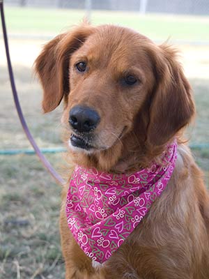 Sandy here! Just an update on what's going on with me. As you can tell I'm dark red and my foster mom says I'm really cute and sweet. I weight 64lbs. I'm not UTD on my shots yet as I have horrible skin allergies and infection. Also from having so many babies I have a vaginal prolapse. My doctor put me on some meds to help with the inflammation in my bottom and to help with those pesky skin allergies. She said I couldn't get spayed for about 2 months yet. I guess I'm okay with that cuz I heard once that it kind of hurts!