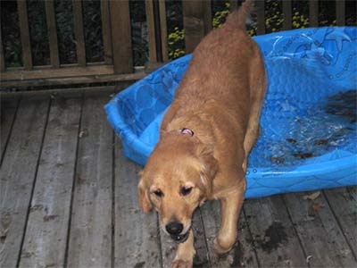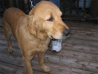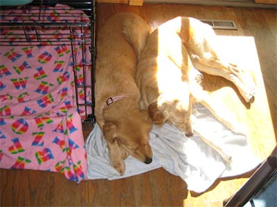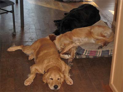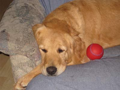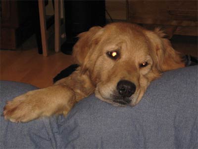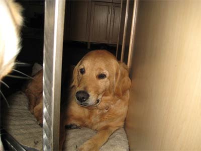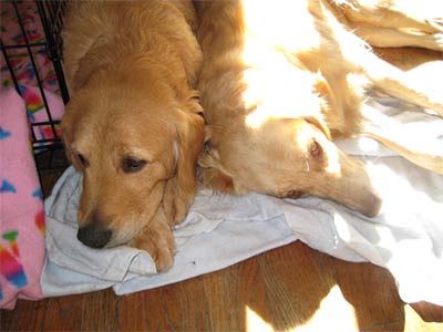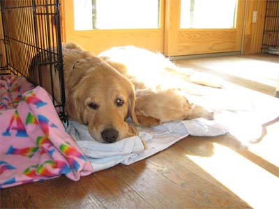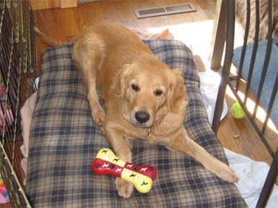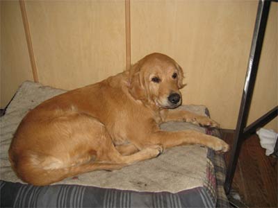 Sassy got a bath first thing this morning and, boy, her hair feels 100 times better. It is still very thin and brittle, but once she starts getting it back I think she will be very pretty. Sassy has the blackest lips I have ever seen and a very big block head. We were told she was a pure Golden and she may be, but with her horrible hair she does not look it.