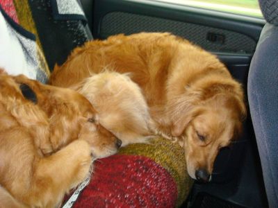 As you can see from the pictures, Savannah has definitely made herself at home.  In the pictures, we are driving home from the lake and both dogs are in the backseat with one of our kids…Savannah is the one all stretched out with her snout in our resident dog’s furry butt!  I think Maya is starting to enjoy Savannah’s company as much as Savannah enjoys having her around the house.  A month ago I would never have allowed them to sit that closely together, as they were somewhat growly and snarly toward one another.  Now I find them following each other around the yard and laying in close proximity to one another.  Because of this, I do think it is really important for Savannah to have another dog around to keep her company if she’s going to be alone during the day…She loves to hog all the attention in the house to herself and seems pretty confident, but I still think she likes the security she gets from another dog and learns the ins and outs from them, too.