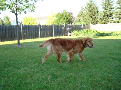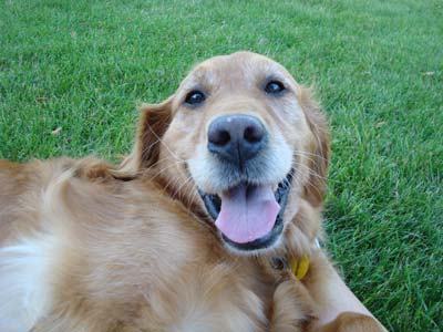 Hello RAGOM fans!  You are in for a treat because you are about to meet Savanah, a BEEEE-U-TEEEE-FUL 65 pound pure-bred Golden Retriever being fostered in Grand Forks, ND.  Savanah was surrendered to RAGOM because the family she was living with moved from a farm setting to town, and Savanah just wasn’t happy with the change.  Savanah’s age is somewhat questionable…her previous vet lists her age at about 7 years, but her surrendering owner was under the impression that she was closer to 10 years.  Regardless, Savanah is a very playful Goldie girl that we have nicknamed Chet.  Why you ask?  Well, when Savanah is excited and her name is called, she barrels towards you like Chet, the “reindeer in training” from the Santa Clause 2 movie…front and back legs going every-which-way, head bobbing, moving at 90 mph to get to her people (especially foster mom).  It is absolutely hilarious (and adorable) to watch!  She also S*M*I*L*E*S and grunts when she’s happy…definitely one talented Golden!!!