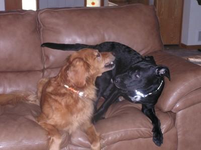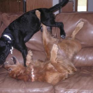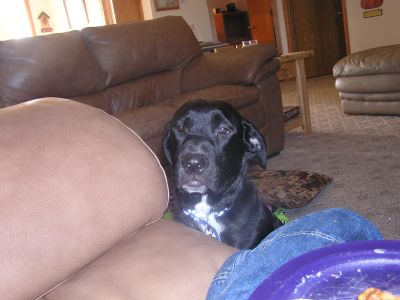 11/18/06: Hi. Meet Scrappy, a five month old golden retriever/lab mix (dad is golden). Scrappy and his dad Doobie 05-514 were surrendered as the family could no longer have pets where they now live. Scrappy was thought to be housebroken but he is having accidents in the house. He does go outside but is also going inside so we will be working on that. He has losts of energy, is finding that chasing a tennis ball with my resident dogs is fun and likes to be petted. He does like to jump on people so we will be working on that also.