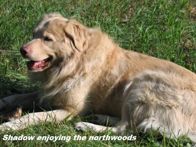 Shadow just spent a week up in the northwoods and he was AWESOME! He got to free roam on the farmstead, chase the chattering red squirrels, listen to the wolves howling, go swimming in Lake Vermillion. He had a blast! He was SUCH a good dog--stuck close by the house with the other dogs, went swimming for the first time since I have had him, and was a GREAT travel partner in the car. (Well, he LOVES going in any car, even if it isn't mine, but for a 4+ hour car ride, he was fabulous!) I think he's actually dropped a few pounds since coming here, which is good for his hips, and the exercise he got this week was great for him. It was so fun to watch him lope across the hayfield with the other dogs, as well as to watch him spring into action-figure mode when Gus (the resident squirrel hunter) sounded the red alert. There were two awesome moments around his guarding stuff (which has really decreased in both frequency and intensity over the past few months). The first occurred one night after all the dogs were totally pooped out. Shadow had the tennis ball which was sitting on the arm of the armchair that he was sitting in. Moe, the other resident, walked over and simply picked up the tennis ball and walked off with it. Not a peep! (In fact, Shadow has never been terribly concerned about guarding from other dogs-- a little growl here and there, but no big show. But for as brazen as Moe was, I was just thrilled with Shadow for his non-response!) The second moment occurred when we were having a barbecue with the neighbors. Shadow had found an old, well chewed by many dogs, deer bone in the woods on their property, and he dragged it over near the grill and sat down near us to chew on it. When the hostess started walking towards him to pet him, I was just about to give her a warning, but Shadow just looked up at her and wagged his tail--again, not a peep, no incident. I was so proud of him! All three of the dogs got a bath Friday morning, and Shadow did just fine with that (another first since he's been here). That night, we had a picnic on Lake Vermillion with yet another dog, and Shadow did fine with this somewhat feisty Ridgeback. My two, having just totally dried out from their afternoon baths, were in the lake within 30 seconds. Shadow joined them and seemed to love going for a little swim. Also, there was tremendous tennis ball action going on during the swimming and we had NO controversy over who the balls belonged to! He slept in the car most of the way back. We stopped to visit at another farm near Cloquet, and he stuck around, and was very well-behaved while we visited in the house. In fact, when we were leaving, he didn't want to go. He parked himself in the big farm kitchen and seemed to be saying "This house needs a dog." He was totally pooped out last night. This morning I brushed him, and he again was such a good boy--no resistance, even though he had quite a few tangles that would have made me crabby if I were him. I am just so happy at how Shadow has settled in as he has gotten more trusting. Nearly everyone who meets him develops a crush on him. He needs a home with someone who is dog savvy, who won't be ruffled by his occasional growling incidents (note: he has never snapped, ever, at me or the other dogs; he's very polite about giving his warning signals), who wants a big mountain of happy dog who will stick right by your side, who LOVES walks, rides in the car, chasing sticks. He gets along fine with other dogs, has a little too much interest in cats (but again, he's never gone after the cat). He gets along great with my two dogs, and is just a delightful love muffin of a dog! And smart and good-looking! What a package! Call now!