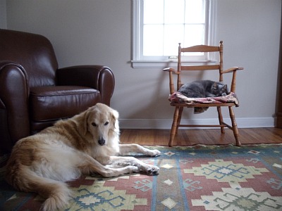 We already had two cats. Simba has blended into that pack. Of course he is the king of the jungle and thinks he is boss. They are more patient than Simba and not afraid to swat his nose if he forgets his manners. One of the cats accompanies us on walks around the block regularly. That is a treat we all like We all sleep in the same room at night. Simba has integrated wonderfully into our pack.