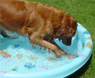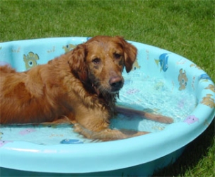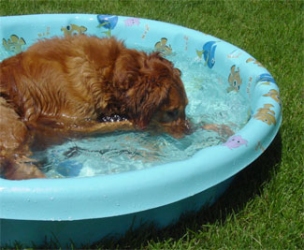 I had to send in some pictures of Skye enjoying the pool. I know the last couple of days were hot, but I have never seen a dog need to cool off their nose by putting it under the water. What a funny girl!