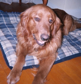 Smiley has come to stay with us until a forever home can be found for him. Smiley came from a family that no longer had the time to spend with him and wanted something better for him. Smiley is a young dog that we don't have much history on, the Vet believes he is between 2 and 3 years old. His original family adopted him from the Humane Society and they had no history because he came in as a stray. Smiley is a dark red Golden, weighing in at 68 lbs., which is a good weight for him. He is an energetic boy who loves the outside and loves to play with a ball or chew on a bone. He is a good dog and with a little attention and a little training he'll be that great Golden! We had a Vet visit yesterday; Smiley is now up to date with his shots and was tested for heartworms - which came back negative. We have another Vet visit for December 30th for a neuter, then he will be ready for his forever family. If you would like to get to know more about him or to meet Smiley before then, please contact Ragom. More about Smiley next week...