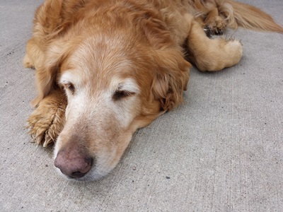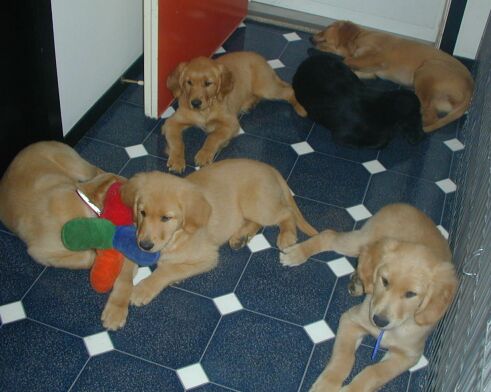 01-279 Patton - born 7/13/01. Red-gold, nice sized male who is happy all the time. Loves to come to the office with me and whines to go outside all ready. Loves to walk, even down town.
