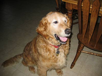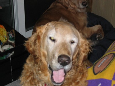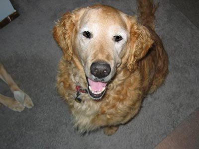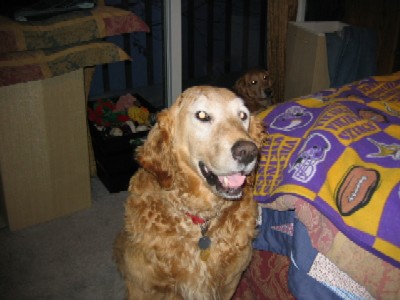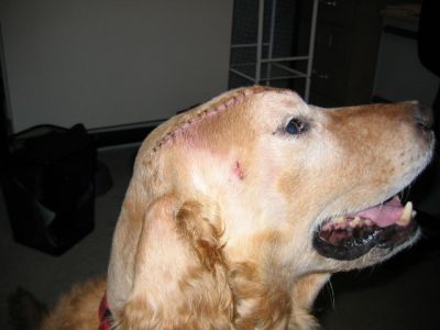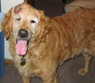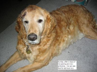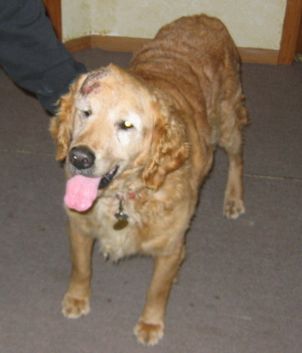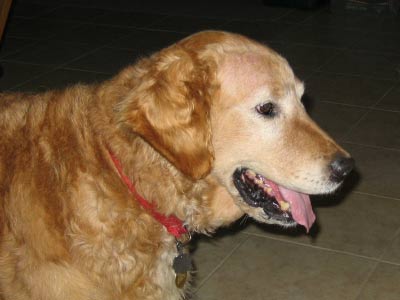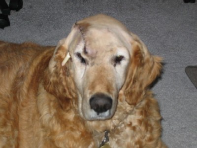Sport's head is healing well. He has hair growing in and is looking good, he is sporting a crew cut instead of the bald look. We thought we should send a few new pictures in before we make it to PetCo. Sport is a very happy go lucky guy and easy to work with. He has come a long way since Thanksgiving. Sport no longer needs to be crated and has free reign of the lower area of our home while I am at work without accidents. He has learned to come when called, sits, lays down, and shakes. Sport is catching on to leash walking without tangling up in the woods. Looking back, he is one smart boy who wants to please. Sport leaves the cats alone even when they are at his water bowl and enjoys playing with our resident Golden, Aster. We are anxious for him to come off his antibiotics in a couple of weeks to see if the infection has cleared completely, keep your fingers crossed.