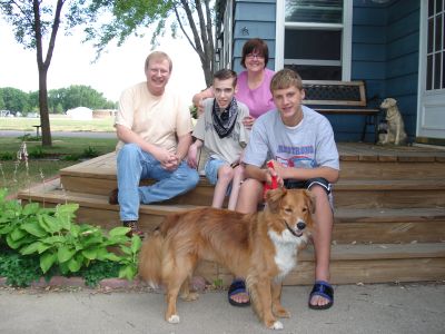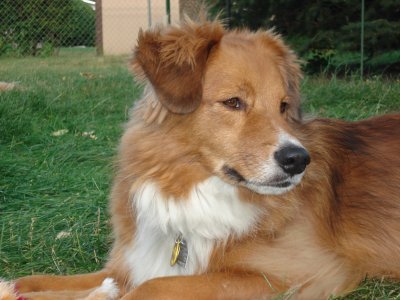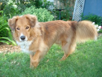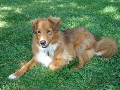 Squirt is really quite a special dog. In the short time he's been with us, he has been transformed from an outdoor dog to a full-fledged member of our family! He is completely housetrained and now has free run of the whole house. He has never done a single naughty thing in the house and he is totally fine with the cats now...he loves to watch them, but he doesn't chase them anymore. Squirt is a very social guy and gets along great with other dogs. We recently took him to a Humane Society picnic and he was one of the most well-behaved dogs there. Needless to say there were lots of dogs at the picnic, but Squirt just took it all in stride and even scored a hot dog! Many of the volunteers commented on how beautiful Squirt is. He is wonderful with kids of all ages...he's very playful but he seems to know that he has to be extra gentle with the little ones! Squirt becomes more and more affectionate every day...he loves to give kisses, follows me everywhere, and if invited, loves to sleep on the foot of our bed at night.