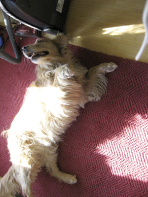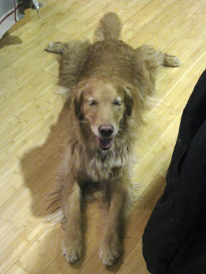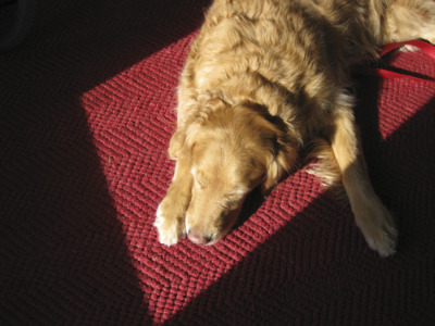 Beautiful Sugar, who came with the nick-name "Sugar Bear", arrived at our home late tonight after a long drive from Wisconsin. She rode perfectly in the car, snoozing most of the ride. Sugar is a 6 year old, gorgeous blond purebread Golden, with AKC registration to boot! She has beautiful, innocent eyes, and a loving playful spirit. Sugar comes from a very loving home, where they took great care of her and were very sad to see her go, but she was not fond of the two small dogs in the home. For some reason, she just couldn't make it work with those little pups, so she is on to a new adventure where we can figure out what kind of home will make her the happiest she can be! Lucky girl!
