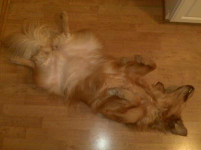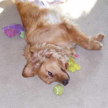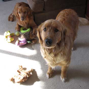 I still ignore the other dogs here. As you can see in the picture, the other GR here does not share the toys. He doesn't like it when I steal one and carry it around, so guess what I do? Yep, I steal his favorite hedgehog and prance around right in front of him : ) That will teach him for not sharing.