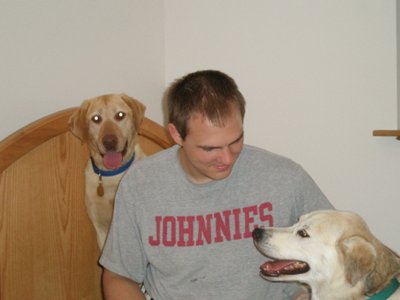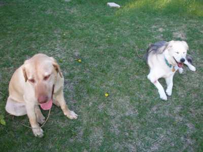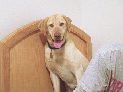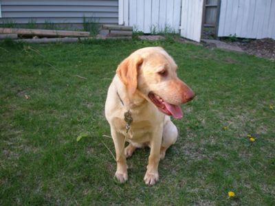 We don't know much about Sunni's story. Her time was up at an Ohio shelter and RAGOM said we could take her - a very lucky family should be thankful! Sunni MIGHT be a golden mix, but we are 99.99% sure that she is a yellow lab, so she is our RAGOM Honorary Golden! Sunni has a genuine heart of gold, and really, that's what counts the most. At some point, she must have been a house dog. She is confident, friendly, and very attentive. She is not an "explore around, get into things" kind of dog, she prefers to keep close to Foster Dad or me. She also is snoozing on the bed in the office as I type and hopped up there without any encouragement from us.