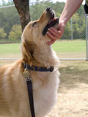 Pros: house trained, crate trained, dog and people friendly, knows sit and down, walks well with a gentle leader, loves everybody, does not counter surf, not destructive, trained to an invisible fence, no aggression, and does not bark!!. Her owner has said she has only heard her bark about a handful of times since they have had her. They also reported that she has submissive peeing but I have not seen that at all. She met my dogs without any incidence. She has not in gaged in any play with them so not sure if she knows how. She pretty much just ignores them. She does like balls though and carries them around in her mouth and it is tough getting it away from her but if you can and throw it she will chase it. Also reported by her owners that she is afraid of loud noises but I walked her on July 4th with fire works going off in our neighborhood and she did not react. She has seen the vet and is micro chipped and healthy with the exception of a spot on her front paw that looks like she licks, but has left it alone since she has been in her foster home. Her coat is also dry and course and it could be from her recent hair cut. She was professionally groomed and it feels better now. The groomer said she did very well. I think once her fur grows back she will be even more pretty then she is now. Some people have mistaken her for a yellow lab because of her haircut. She appeared to be somewhat anxious when we first got her but seems to be settling in. She does not seem to mind the warm weather as she likes to just go out and lay on my deck. I have her on a tie out but I don't think she would go anywhere as she comes right away when called.