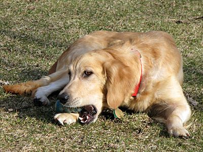 On Tuesday, my foster dad took the day off work to be with me all day long. I learned what toys are and had so much fun! This is the most fun I've had in my whole life! I got to run around with stuffed animals in my mouth and even throw them into the air! I got to roll on my back on REAL GRASS! I've never done that before! It felt great! I had fresh water and good food. This is the life!