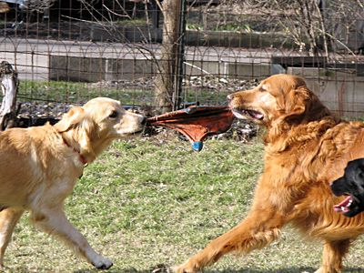 Suzie has been busy the past two weeks meeting new people, dogs, and even a cat. Yes, she passed the "cat test" with flying colors! Hooray! She met our neighbors cat, sniffed noses and didn't bat an eye. Then Suzie turned her head and said hello to the dogs! I don't think she would have any problem at all living with cats.The RAGOM event at PetCo last weekend was fun! We stayed longer than planned because Suzie was doing so well. She was very relaxed having our dog Robbie by her side while she met new families and dogs. She was shy but gentle and a perfect little lady.A potential adopter came out with her dog to meet Suzie this week but her dog wasn't interested in playing with our frisky little puppy mill girl! Suzie needs an active resident dog who wants to play and run with her. She loves every dog she meets, but needs one who will not tire of her "puppy play". One of Suzie's favorite playmates is her sponsor Sara-Lynn's 7 month old Golden named Morgan. Morgan and her brother Bailey came over to play last night and the dogs were thoroughly exhausted after a couple hours of running and playing. Sara-Lynn and her dogs have been to our house several times to see Suzie and have remarked how much she has come out of her shell since their first visit. Suzie came right up to Sara-Lynn for attention last night and is no longer shy around her. Many thanks again to Sara-Lynn and her family for sponsoring Suzie. It has been fun getting to know them and we also appreciate their donation to Suzie's medical bills. Suzie continues to be a wonderful addition to our family but she needs to find a forever home of her own where she can continue to be loved. If your family has a playful resident dog, fenced yard, and a quiet peaceful home please contact [dot] [dot] /ym/Compose?To=placement