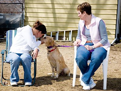 My sponsors- Sara-Lynn, Dan, and Caitlin came over to visit me twice and brought their dogs Morgan and Bailey. We had a blast and I really liked them! Look at the cute picture of me with Caitlin and Sara-Lynn. Thank you so much for sponsoring me and helping with my doctors bills!