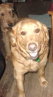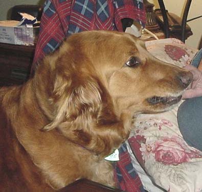 Tannera is blowing her coat right now. Think of the worst shedding you've seen, and then multiply that by 10 and you'll understand. Everything in the house is covered in hair (or so it seems)...but then again, I guess I expected that with three Goldens in the house. Tannera's coat is especially thick, however, and it's coming out in clumps. I'm a little concerned because she's getting quite thin in several spots, so we'll consult with the vet on Friday when she gets her stitches out. Probably nothing, just her getting rid of four years of old, dead undercoat.