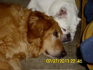 It's with extreme sadness that I notify RAGOM that I helped Tanner 08-316, cross the Bridge early Saturday evening. Tanner started panting all of the time, much like Abby did, about 1.5 months ago. If my 11.5 year old bulldog and 15 and 12 year old cats weren't perfectly healthy, as well as myself, I might have thought it was something in my house. Tanner had numerous lab tests that showed nothing wrong but Thursday afternoon when I returned from the fair, his breathing was labored and faster than before. He had also started squinting his eyes quite a bit. I took him to the U on Friday morning and he was x-rayed, had an ultrasound, an echo cardiogram and more lab work. All came back normal and what the vets thought, including my own, was that it was something neurological but that would take an MRI to be sure and they couldn't do that until next week.