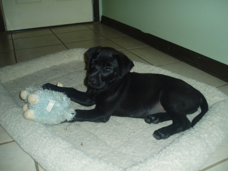She told us that our dog-mom was a yellow-lab mix, a gentle dog that watched over the children in the household and that our dog-dad was a friendly black lab. She said we are very lucky to have had such nice parents and that our gene pool is excellent for temperament! She said that we came to RAGOM because our mom died when we were only two weeks old and that is sad. But because of that, we were bottle fed by volunteers and had more people handling than other puppies. Weâve also been very lucky because we have been fostered in a home and not raised in a shed or a garage. We have learned that our kennel is our comfortable place for sleeping and going to the bathroom outside is a good thing, sometimes we even wait at the door when we have to go out. She says we will be very easy to housetrain and people like that. She has also taught us that when we want to be petted or have treats, if we sit quietly, we will get attention and treats (and we like treats). We have met tons of nice people and love the neighborhood kids. The grown-up dogs here teach us doggy talk and sometimes tell us when they donât want us to play with them anymore and we listen.