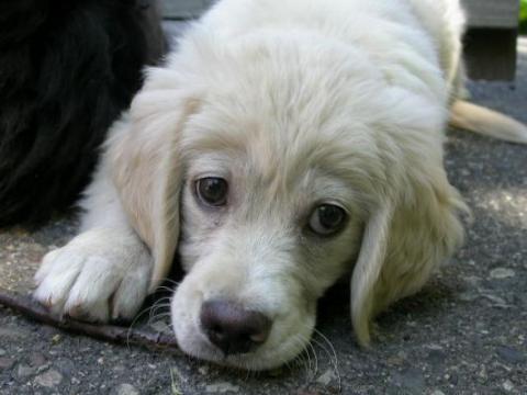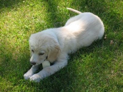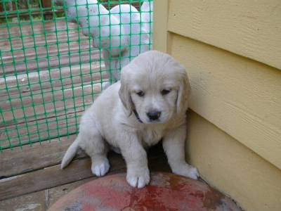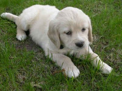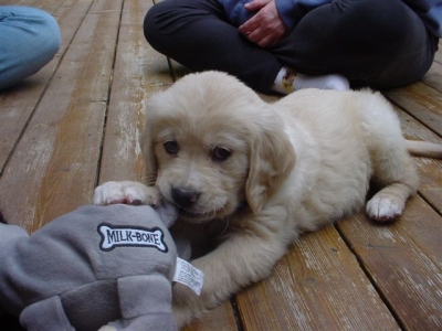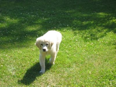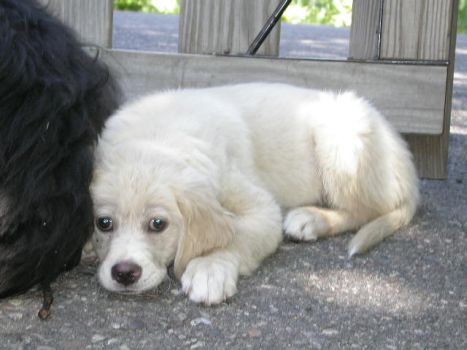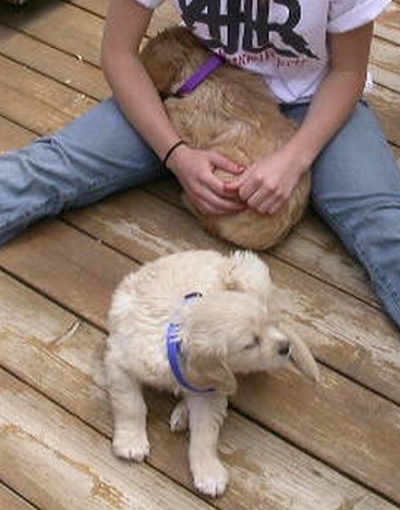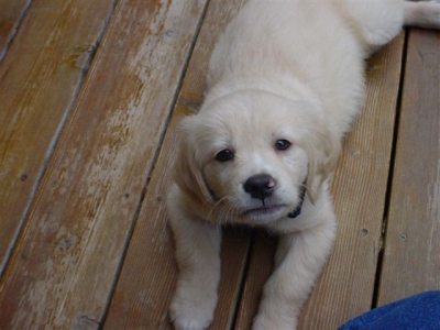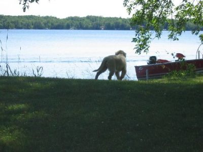I am finally getting to write you guys a note about me. My forever family and I are in love with each other. I have been behaving myself - have had only 2 accidents since I was here and one was Wes's fault. He didn't get me out in time. It is very low key around here and nice to lay out in the front yard with the breeze off of the lake. I got brave enough to walk to the end of the dock the other day and Wes had me in the water this a.m. giving me a bath. I swam around a little - it was great fun. I hope to go out in the boat soon. Dr. Deb had some good news for us today. I had to go in and get some shots - I was so good I didn't even whimper. She said my legs looked much better than two weeks ago - if they were going to go bad they would have been worse that fast.