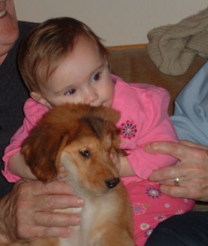 I just have to rave about Bandit. She has been with us for almost 48 hours, and she has been the ideal puppy while here. She has been doing very well at housetraining, has really only had accidents at night when she's not able to wake me up to go outside. But she uses papers in the laundry room as best she can. Yesterday we had a houseful of company and she just laid under the kitchen chairs and either watched or napped. I had to be sure to check everyone's purses on the way out, because more than one of my relatives wanted to take her home!