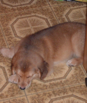 Here are a couple more pictures of Bandit. She let my cousin's 1 year old baby hug & kiss her without a peep, just lots of puppy kisses in return. And her napping cutely while I washed dishes (I couldn't convince her to help!).