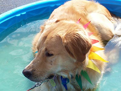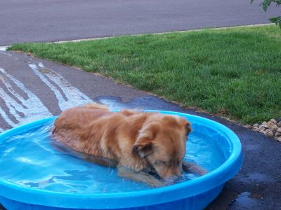 I think it's pretty cool that I know how to hold my breath and dunk my entire head in the water bowl. Libby the Yellow Lab doesn't even know how to do that...ha! But, now mom has raised the water bowl up on a milk crate (so now I can't pretend to swim in it) and only puts a few inches of water in at a time. But, there's still the bowl outside...she's not as smart as I am!!!