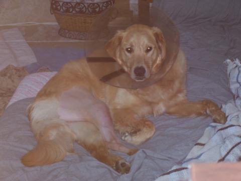 All the people looked at these black pictures in front of a white light and said that my right cruciate ligament is completely "gone", and the left isn't much better. Oh, and then I REALLY got some lovin's after that; I must be really handsome or something in those photos. They kept saying these letters; TPLO, whatever that stands for. I guess I need two of those - one on each side. They said because I was so young and adorable, that I would be worth it. These people are really smart!