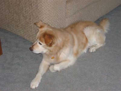 He has a tail to âfan youâ also! When he is happy it is up and running. He knows commands well, such as sit and stay. He takes treats fine. All the dogs eat at their stations at the same time morning and night and there are no problems with any of them. The cats can come up and rub him, too!