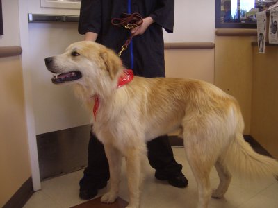 Hi, it's me, Tom. I just got back from Doggy Parlor and am I gorgeous!!! And now I'm in love..... I love the girls at the Doggy Parlor; they bathed, conditioned and brushed me until I am so soft and cuddly that everybody stopped to look at me when I left. The girls also said that I was really well behaved and that I should have a forever family that wants to pay a lot of attention to me, because they could tell that I love attention. I ride in the car very nice, I don't really want to get in the car tho, so it takes a little prodding to get me in the back seat, but once I'm there - no problem. I either sit and look out the windows or lay down and take it easy and let foster mom worry about where we are going. I better go and get back to chewing on the treats foster mom bought because I was so good. This is foster mom writing: Tom aka Tommy absolutely loves attention of any kind. He has yet to give kisses to anyone but the cat, but he nuzzles you with his nose. I still haven't heard him bark and he now has the run of the house when I'm gone and does just fine. I'm sending a picture of Tom after his Parlor appt. He evens walks with a little spring in his step now that he is clean and smells so nice. His forever family would be one that wants to shower him with alot of attention. He loves nothing more than to be scratched behind his ears, he would let you do this for hours on end. He has a tendency to wander when in the backyard so he needs to either have a fenced yard or be tethered (which he doesn't seem to mind). I don't think that he really cares if he has another dog in the house, he does like to meet dogs on our walks but he doesn't really play with my 2. He is so sweet and loveable, he reminds me of a large teddy bear, that wants nothing more than to be loved. And he has a lot of love to give in return. You just melt when he looks up at you with his big beautiful loving eyes. If you have room in your heart for a large, loveable, cuddly sweetheart like Tom please ask to meet him. I guarantee you'll fall in love with him.