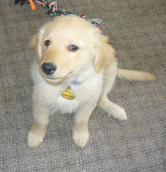 Our little Miss Sunshine is still with us. She had a family lined up to meet her, but the family changed their minds, so we hope to meet a new family this week. Sunshine receivd a clean bill of health at the vet last week, and will just need to continue with normal puppy check ups. She is the smallest of the pups, weighing in at 10 lbs at 8 weeks of age. She is very smart, curious and adventurous. She is outgoing and her tail never stops wagging. She is doing well with learning that puppies go potty outside and she will sit for a treat. She loves attention and is so ready for her forever home.